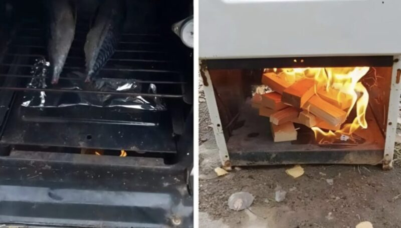 След като печката се раздели, секцията на фурната може да се превърне във външна камина. Вътрешността трябва да бъде почистена старателно, за да се отстрани всякаква мръсотия или мазнини. След това може да се постави дърва за огрев и веднъж запалена, топлината ще остане в капан, когато вратата на фурната е затворена. Това създава уютен ефект на камина, идеален за хладни вечери отвън.
