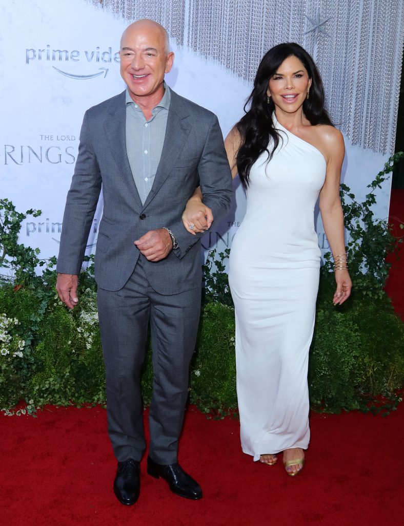 Лорен привлече погледите с шик кафява рокля с флорални мотиви и ресни, съчетана със златни аксесоари и елегантни токчета. Безос заложи на по-дискретен вид с тъмно поло и панталони.