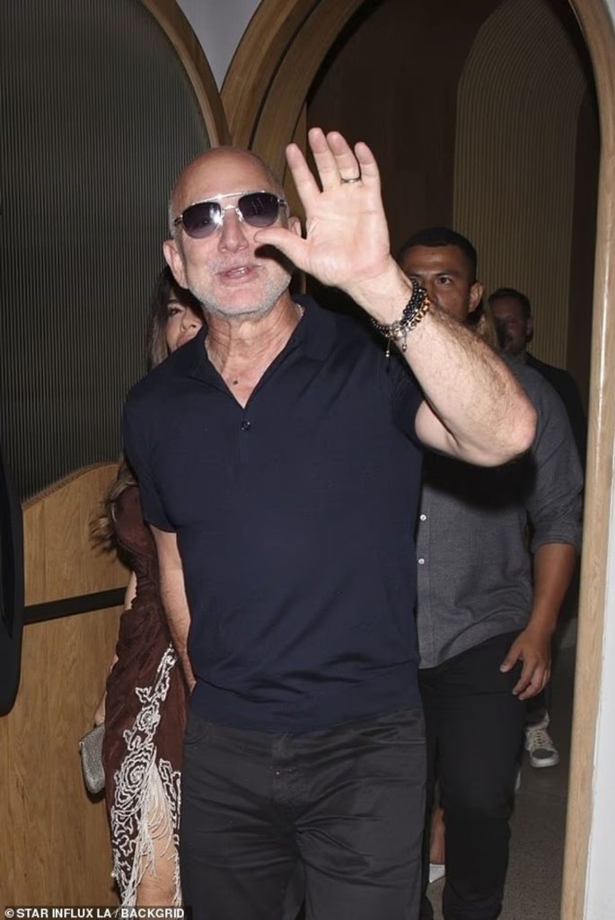 Усмихнати и ръка за ръка, 61-годишният основател на Amazon и 55-годишната му съпруга бяха снимани, докато напускаха ресторант Alba, не дълго след като отпразнуваха пищната си сватба във Венеция.