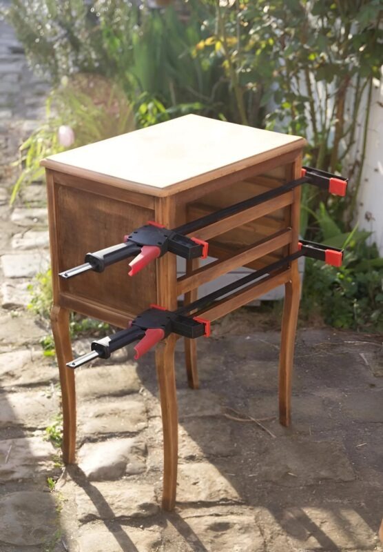 След това дойде ред на ремонтите. Няколко ключови укрепвания върнаха здравината на масичката. Тя стана по-здрава, отколкото беше от години — готова да служи отново.