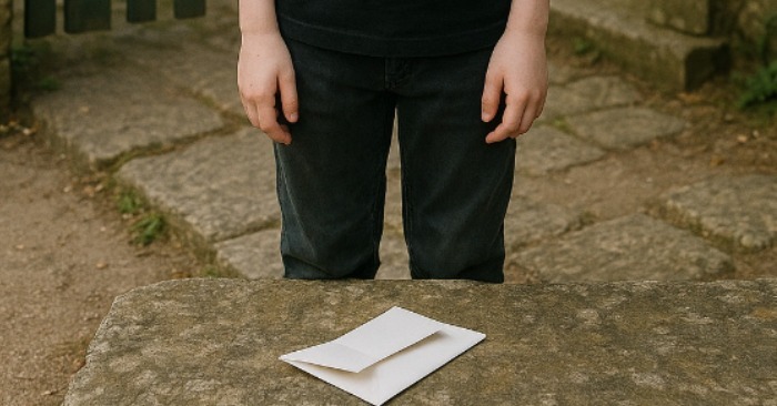 Беше слаб, блед, с износена яке, на около десет години. Не пророни нито дума. Просто се приближаваше до портата, гледаше прозорците на къщата и… подлагаше под вратата сгънат лист хартия.