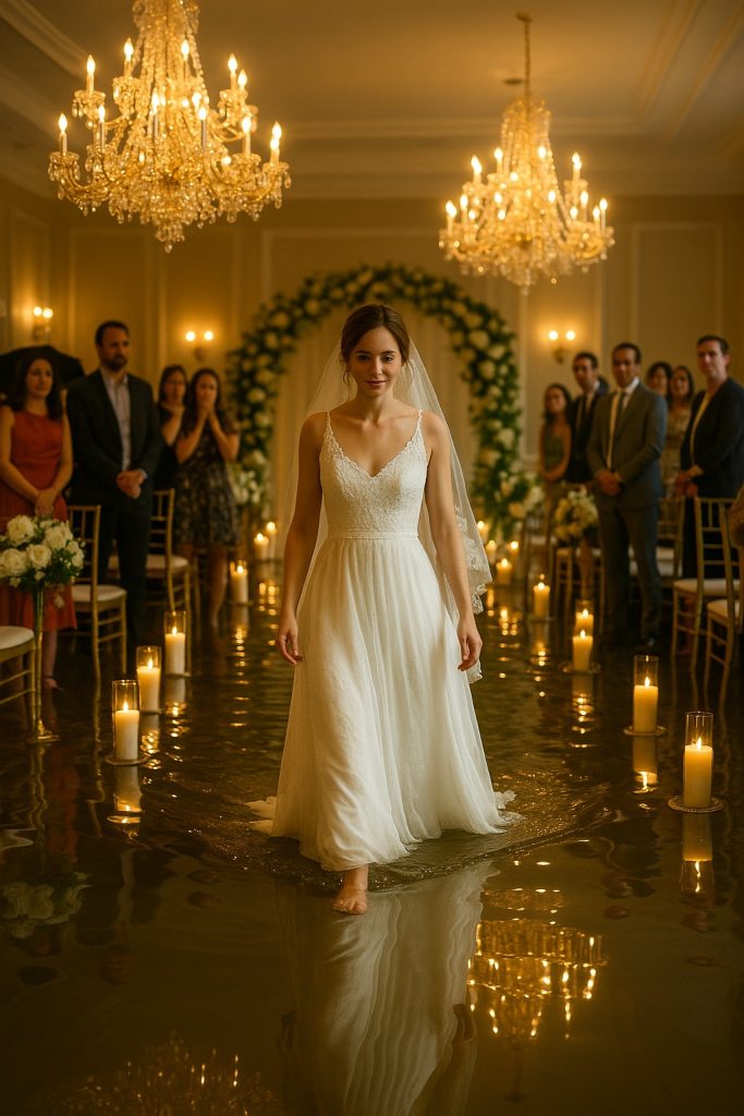 След десет минути водата вече покриваше пода. Светлината се отразяваше в нея като в огледало. Хората в паника местеха столове, вдигаха декорации.