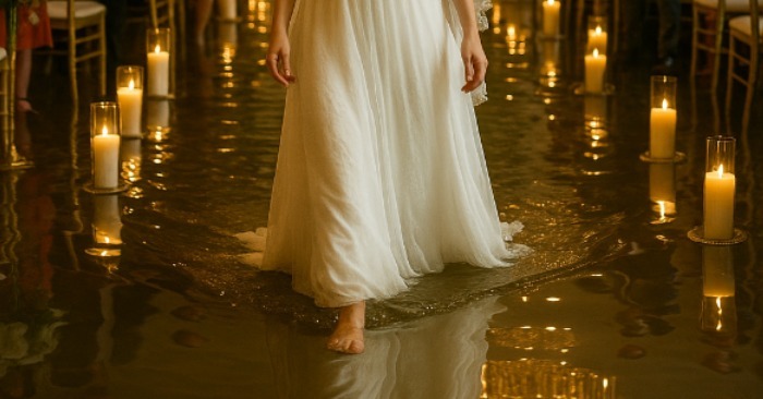 След десет минути водата вече покриваше пода. Светлината се отразяваше в нея като в огледало. Хората в паника местеха столове, вдигаха декорации.