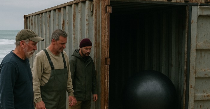 На следващия ден контейнерът най-накрая беше отворен. Моментът беше заснет на камера. Когато капакът бавно се отвори, хората инстинктивно отстъпиха назад. Вътре нямаше нищо, което можеше да се счита за товар – само гладка, черна метална сфера, с размерите на човешка глава.