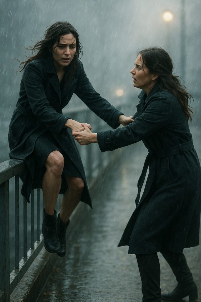 Беше късно вечер. Мъгла висеше над реката, мостът едва осветяван от случайните улични лампи. Анна се връщаше у дома след работа, когато забеляза женска фигура пред себе си. Жената стоеше на самия ръб на парапета, палтото ѝ се вееше на вятъра, а ръцете ѝ трепереха.