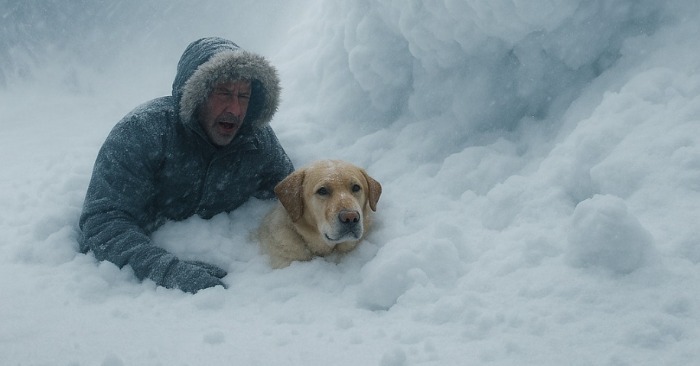 Снегът го прикова към земята, пречейки му да се движи. Тишина и мрак го обгръщаха. Беше невъзможно да диша; въздухът бързо свършваше. Той се опита да освободи ръцете си, но снегът ставаше все по-гъст. Паниката се надигаше, когато изведнъж през гъстия сняг се чу слабо хленчене.