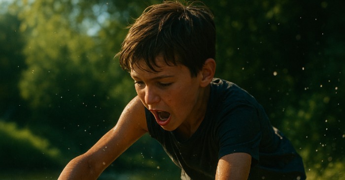 Летен ден, горещ и безоблачен. Реката блестеше под слънцето, децата се пръскаха на брега, смееха се, строяха салове от клони.