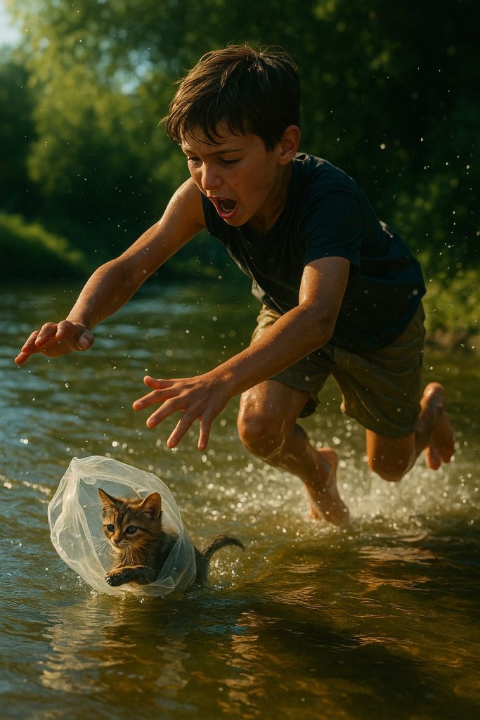 „Има коте!“ – извика той и се втурна към реката.