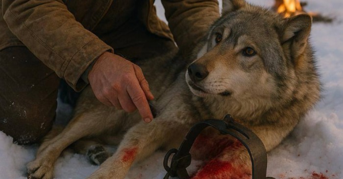 Минаха няколко секунди. Вълкът вдигна глава, погледна право в очите на човека – и не избяга. Просто лежеше, сякаш се опитваше да разбере какво се е случило. Алексей извади аптечката, изми раната, превърза лапата и остави до него парче хляб и сушено месо. Прекара цялата нощ до вълка, седейки до огъня. Пламъкът се отразяваше в очите на звяра – вече нямаше страх, само умора и странно доверие.