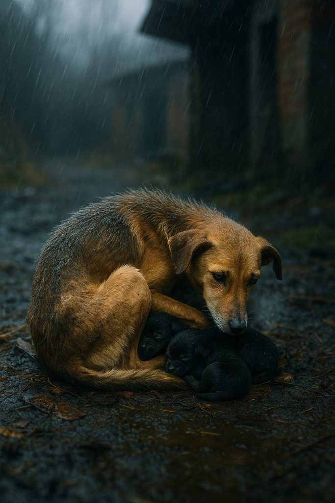 Кучето прибра лапи, прегръщайки кученцата до корема си, предпазвайки ги от вятъра с тялото си. Знаеше, че ако се отдръпне дори за минута, студът ще ги погълне.