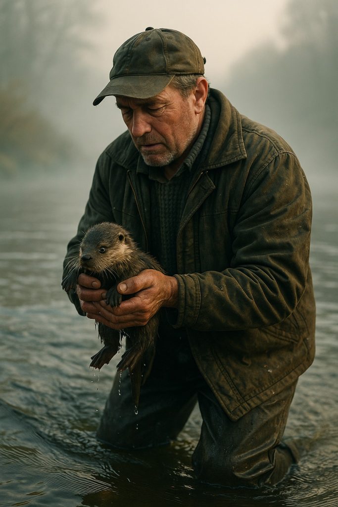 Сергей седеше неподвижно. Сълзи се стичаха в очите му. Той разбираше: тя не беше забравила. Беше дошла да му покаже, че животът връща доброта – дори след години, дори в сърцето на дива река. Когато видрата поведе малките обратно във водата, той ги наблюдава дълго време. И тогава тихо каза: