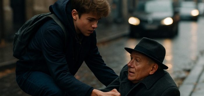 Беше обикновен сив следобед. Студен вятър, мъгла, витрините на магазините отразяваха неоновите табели. Тийнейджърът стоеше на пешеходната пътека, слушаше музика и мислеше за себе си — за училището,