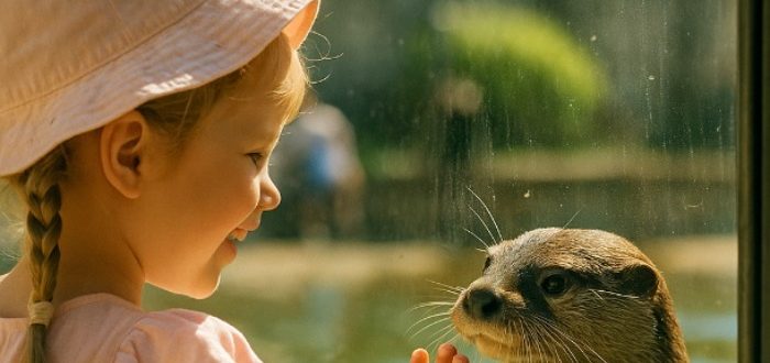 Летният ден беше топъл и слънчев. Зоопаркът беше пълен с семейства, детски гласове и миризма на сладолед. Малко момиченце с плитки, в розова рокля и панама, тичаше пред