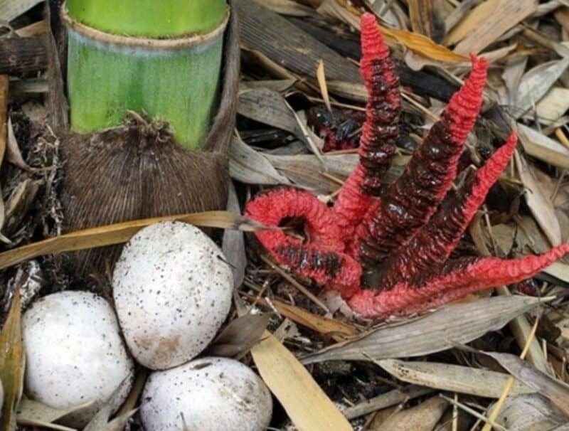 Първоначално се появява като плътно бяло „яйце“. След това се разпуква, разкривайки червени израстъци, наподобяващи нокти, лапи или демонични пръсти.