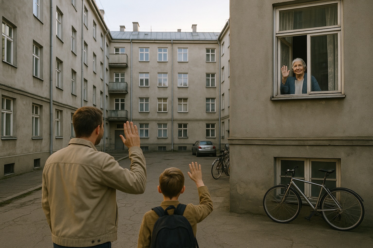 На прозореца на четвъртия етаж на отсрещната сграда, зад бледи дантелени завеси, стоеше възрастна жена. Тънки рамене, избелял син кардиган, сребриста коса, вързана на свободен кок. Тя наистина махаше – малки, внимателни движения, сякаш се страхуваше, че ръката ѝ може да се счупи. Поколебах се, след това вдигнах ръка и махнах в отговор. Лицето ѝ светна по начин, който се усещаше странно личен, сякаш чакаше точно този момент.