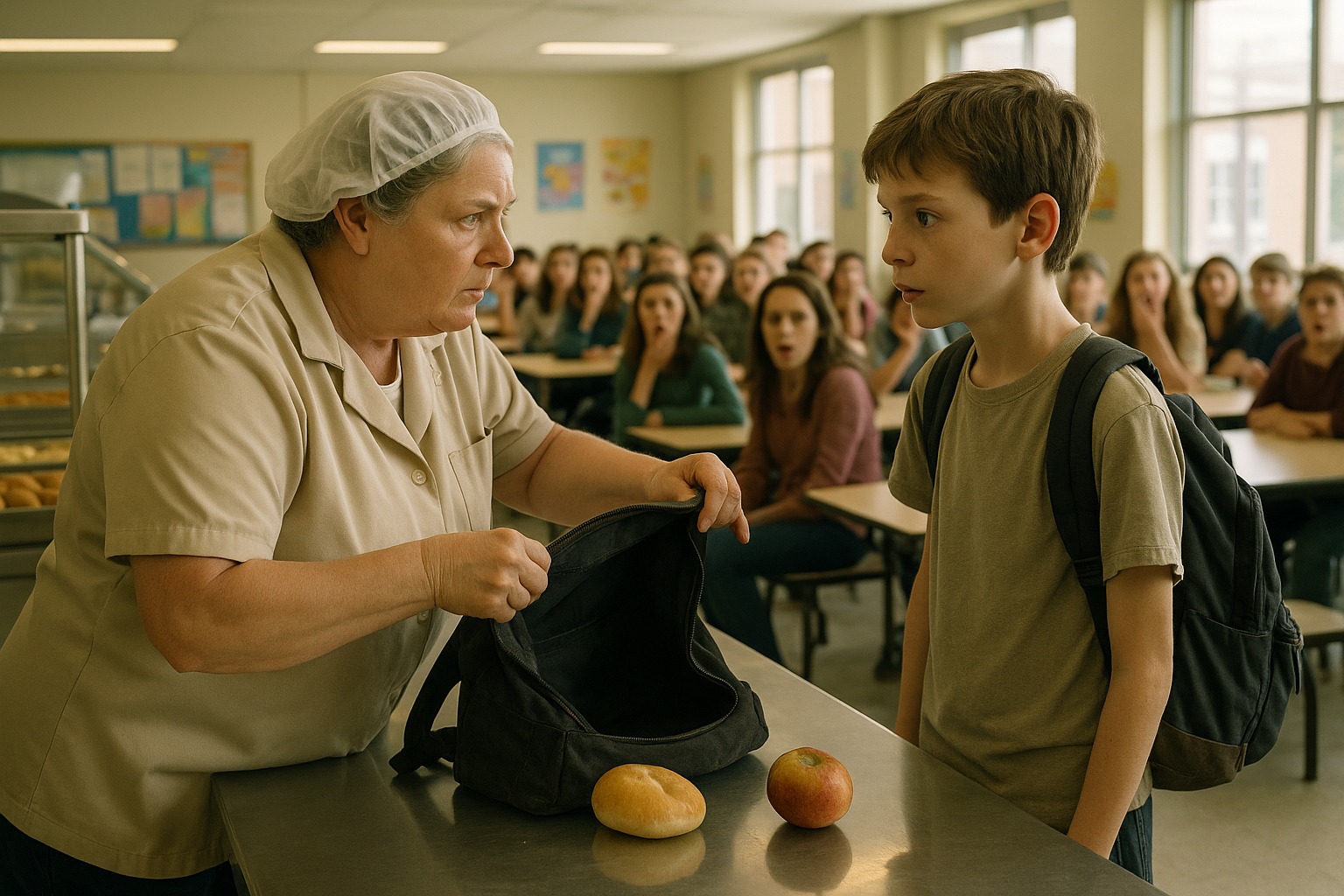Първия път, когато пъхна допълнителна хлебче в раницата си, ръцете му не спираха да треперят. Беше гледал как по-големите момчета го правят за забавление, смеейки се, докато пълнят джобовете си с бисквитки и пържени картофи. Никой не им викаше. Никой не ги дърпаше настрани.