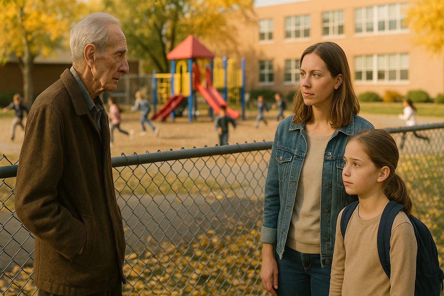 Старецът идваше до училищната ограда всеки следобед, гледайки как децата играят, докато един ден дъщеря ми не се приближи до него и не му зададе въпроса, който промени всичко за нашето семейство