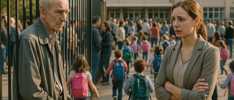 Старецът стоеше всеки следобед на училищната порта, докато един ден учител не го последва до вкъщи и не разбра кой е. В продължение на три седмици Ема го